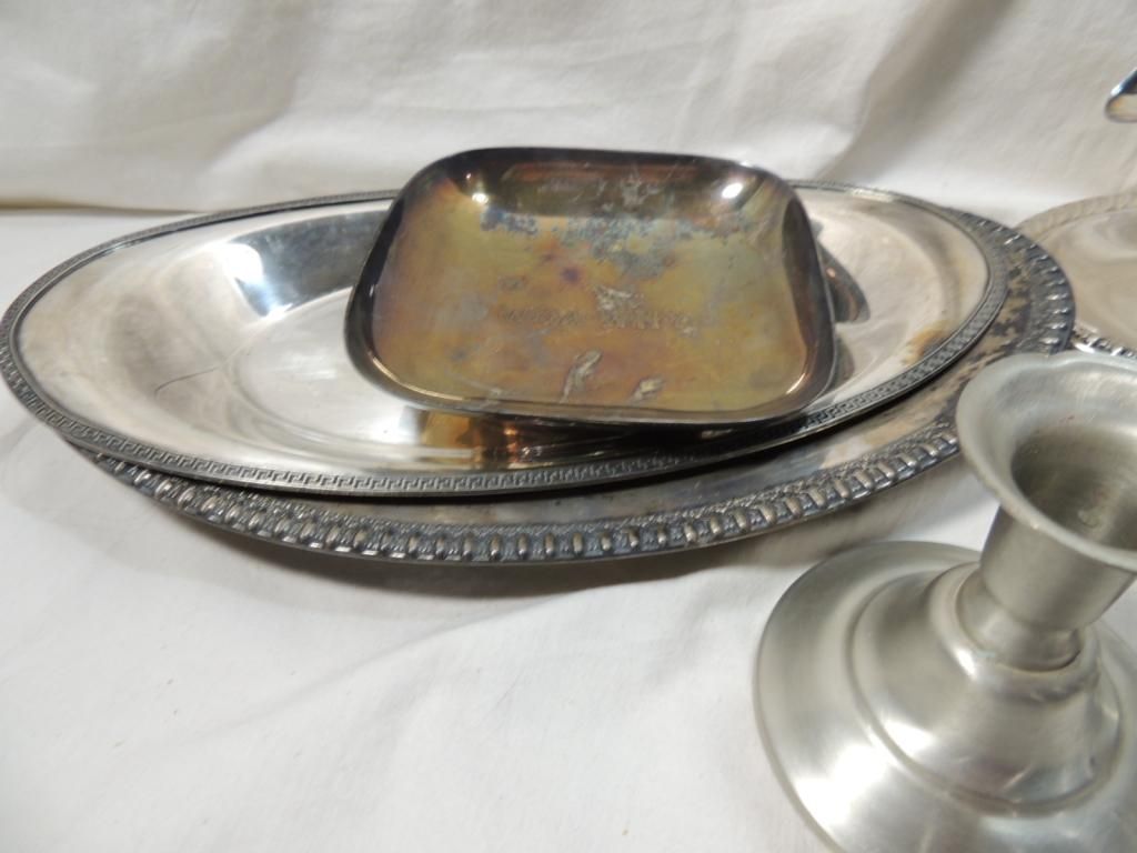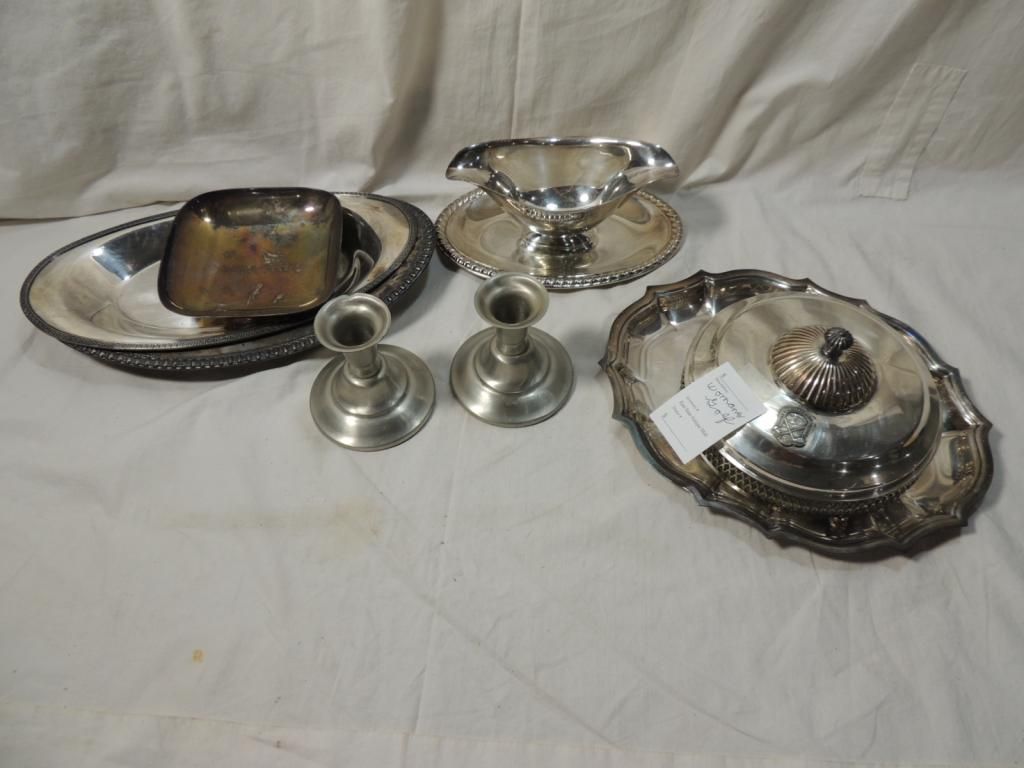 WOMANS GOLF DISH, CANDLE HOLDERS, GRAVY BOAT, CANDY DISHES, SERVING TRAYS. SMALL TRAYS. AS SHOWN SEE PHOTO FOR MORE DETAILS.