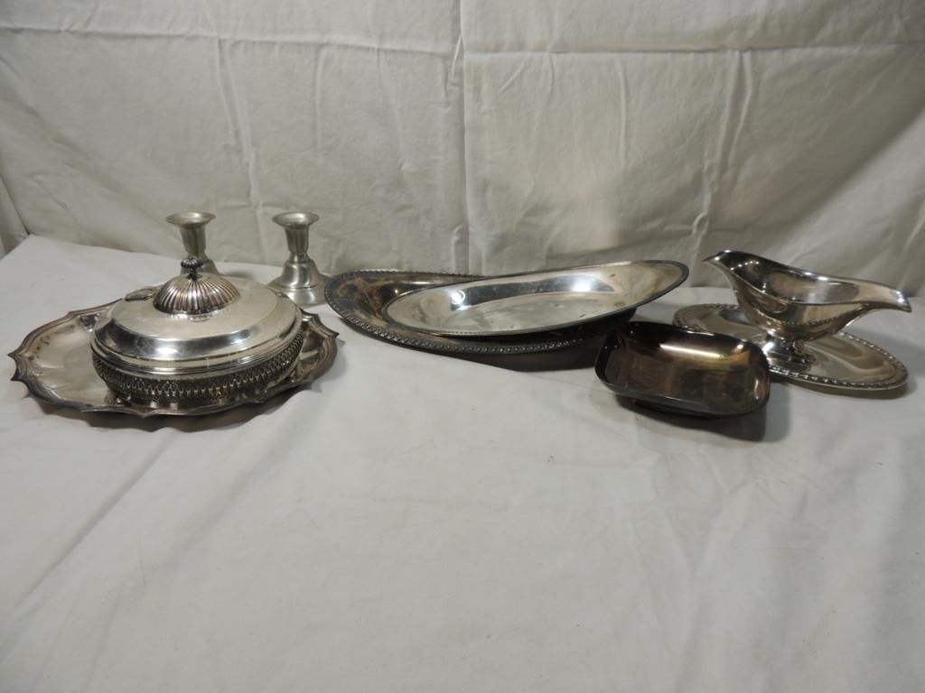 WOMANS GOLF DISH, CANDLE HOLDERS, GRAVY BOAT, CANDY DISHES, SERVING TRAYS. SMALL TRAYS. AS SHOWN SEE PHOTO FOR MORE DETAILS