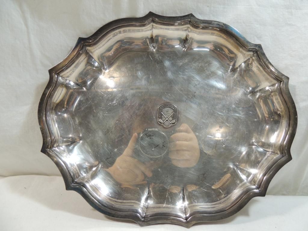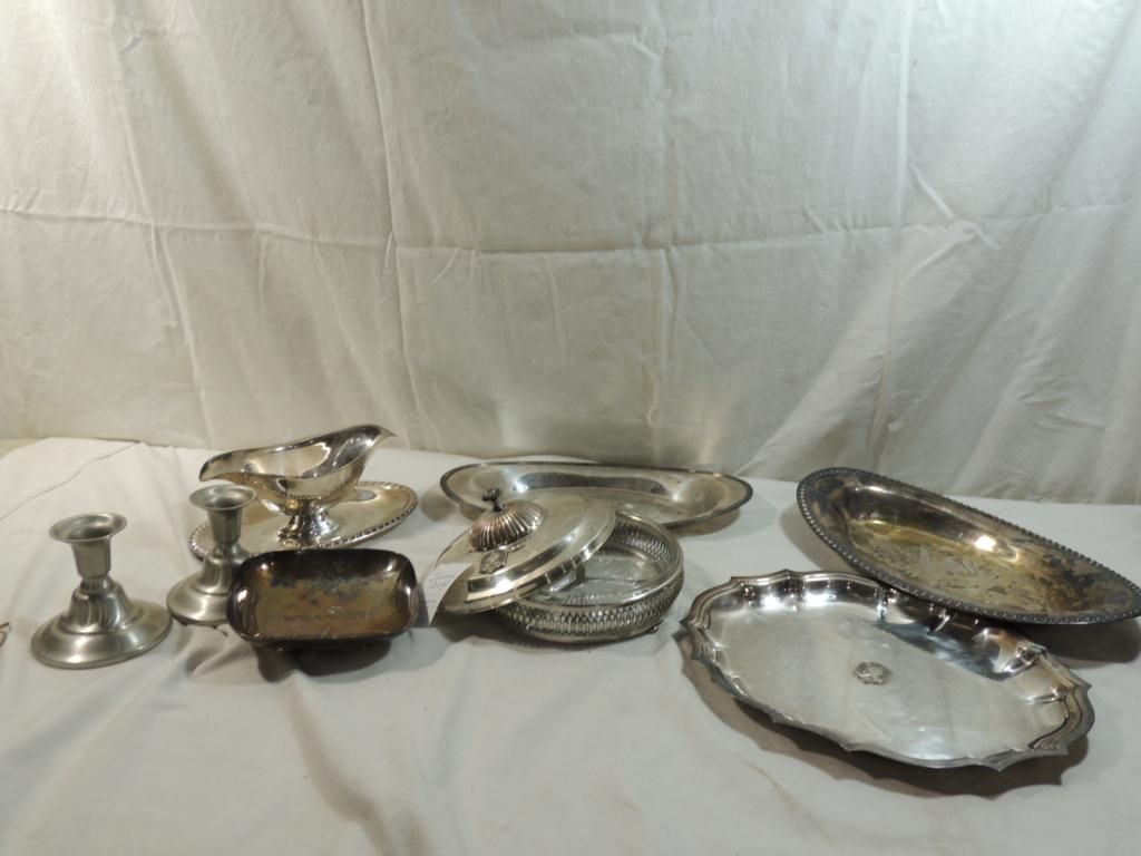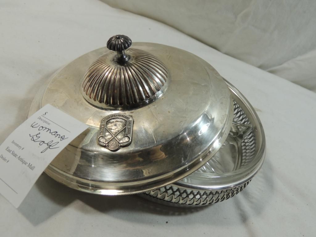 WOMANS GOLF DISH, CANDLE HOLDERS, GRAVY BOAT, CANDY DISHES, SERVING TRAYS. SMALL TRAYS. AS SHOWN SEE PHOTO FOR MORE DETAILS