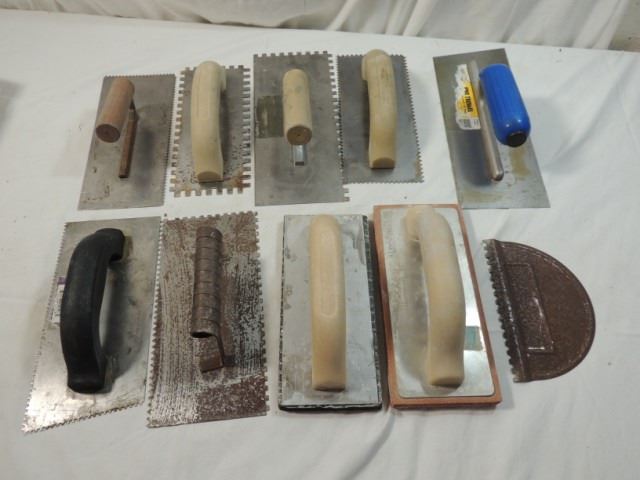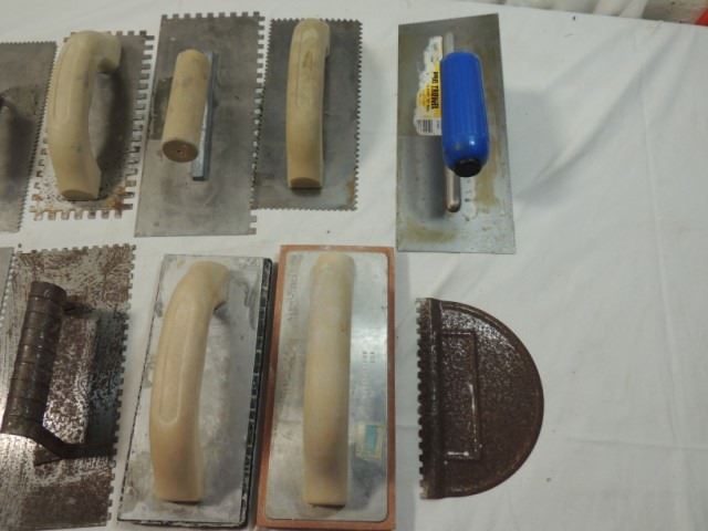 VARIOUS TROWELS, HAND TOOLS, VARIOUS TOOLS, HAND TOOLS, AS SHOWN SEE PHOTO FOR MORE DETAILS.