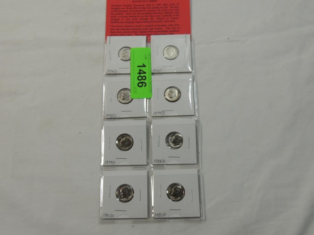 BRILLIANT UNCIRCULATED ROOSEVELT DIMES US CURRENCY COIN COLLECTIBLE. AS SHOWN SEE PHOTO FOR MORE DETAILS.