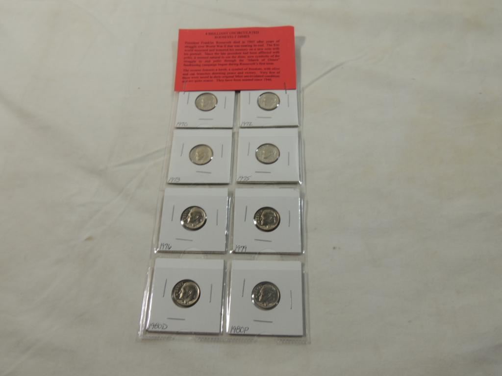 LOT 8 BRILLIANT UNCIRCULATED ROOSEVELT DIMES