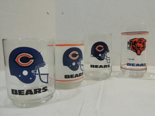 LOT 8 CHICAGO BEARS FOOTBALL GLASSES. VARIOUS STYLES. AS SHOWN. VIEW PICTURE FOR DETAIL.