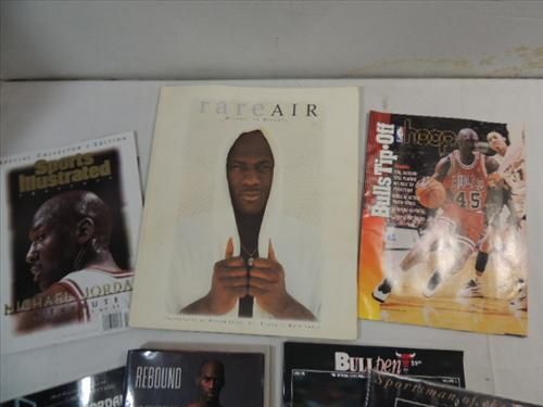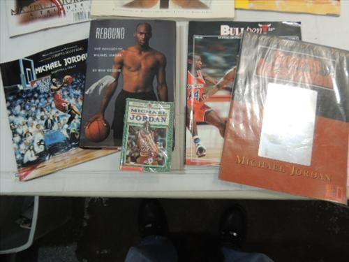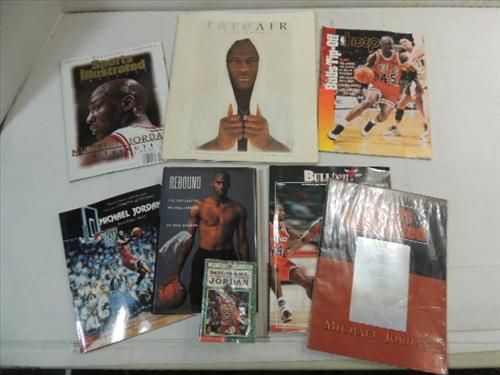 LOT 8 CHICAGO BULLS BASKETBALL EMPHERIA: 2 BOOKS & 6 MAGAZINES ABOUT MICHAEL JORDANS CAREER. AS SHOWN. VIEW PICTURE FOR DETAIL.