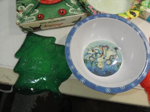 LOT 8 CHRISTMAS & THANKSGIVING ITEMS: 2 TREE STAND, SERVING PLATTERS, AND MORE. AS SHOWN. VIEW PICTURE FOR DETAIL.