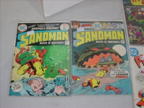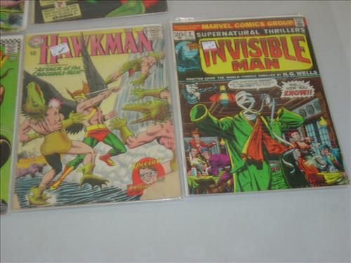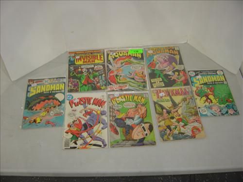 LOT OF 8 DC COMIC BOOKS INCLUDING: AGUAMAN ISSUES: 22 & 23. INVISABLE MAN#2. HAWKMAN #7, PLASTIC MAN #5, #18, SANDMAN #6 AND #2. AS SHOWN. VIEW PICTURE FOR DETAIL.