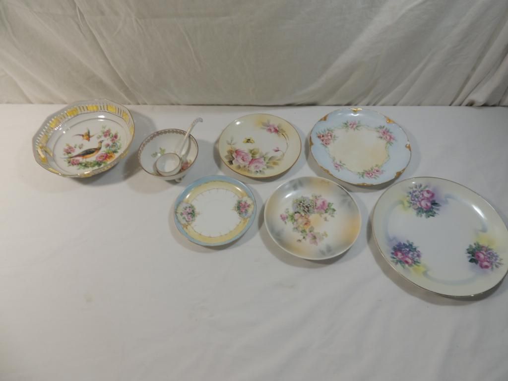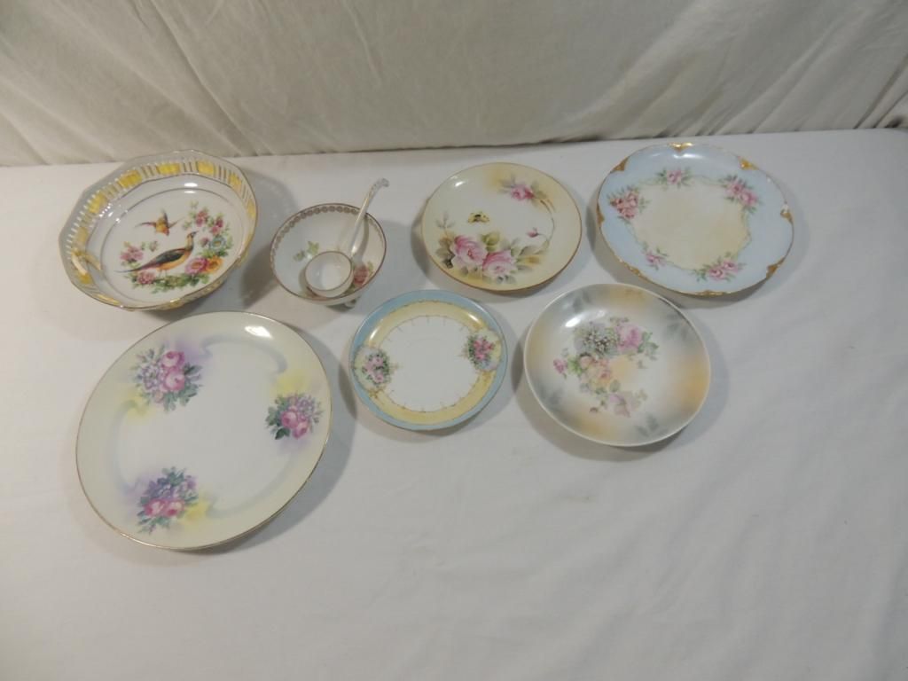 FLORAL DECORATIVE PLATES. BOWLS AND PLATES ASSORTED SIZES. AS SHOWN SEE PHOTO FOR MORE DETAILS.