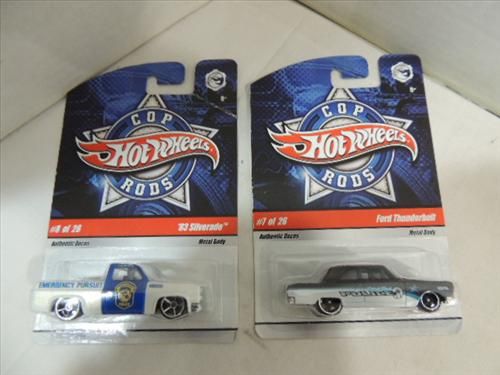 LOT 8 DIE CAST METAL CARS: 6 HOT WHEELS & 2 RACING CHAMPIONS NASCARS. HOT WHEELS: 2 COP RODS, 2 CLASSIC, 2 CONNECT CARS. AS SHOWN. VIEW PICTURE FOR DETAIL.