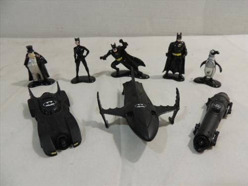 LOT 8 ERTAL DIE CAST METAL BATMAN FIGURES & CARS. NICE QUALITY. AS SHOWN. VIEW PICTURE FOR DETAIL.