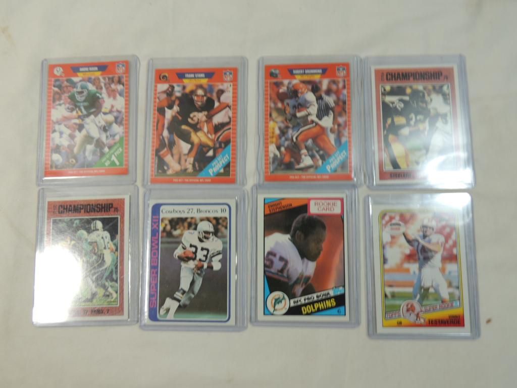 EAGLES ROBERT DRUMMOND, RAMS FRANK STAMS, COLTS ANDRE RISON, BUCCANEERS VINNY TESTAVERDE, DOLPHINS DWIGHT STEPHENSON, SUPER BOWL 12 COWBOYS AND BRONCOS, 1975 NFC CHAMPIONSHIP COWBOYS AND RAMS, 1975 AFC CHAMPIONSHIP STEELERS AND RAIDERS. FOOTBALL PLAYER CA