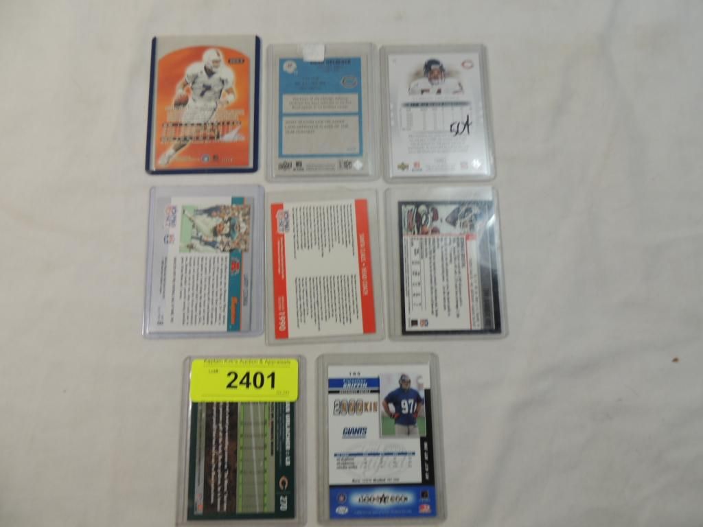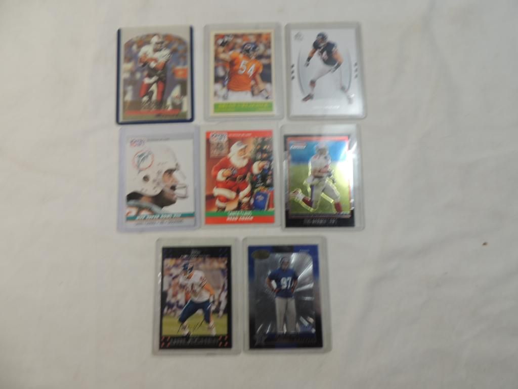8 FOOTBALL PLAYER CARDS. TRADING CARDS. COLLECTIBLE. 3 BEARS BRIAN URLACHER, DOLPHINS LARRY CSONKA, HEAD COACH SANTA CLAUS, GIANTS TIKI BARBER, GIANTS CORNELIUS GRIFFIN, BUCCANEERS CHRIS REDMAN, FOOTBALL MEMORABILIA. GOOD CONDITION AS SHOWN. SEE PHOTO FO
