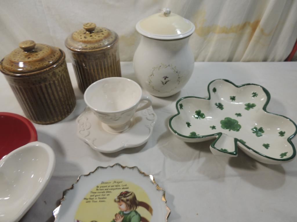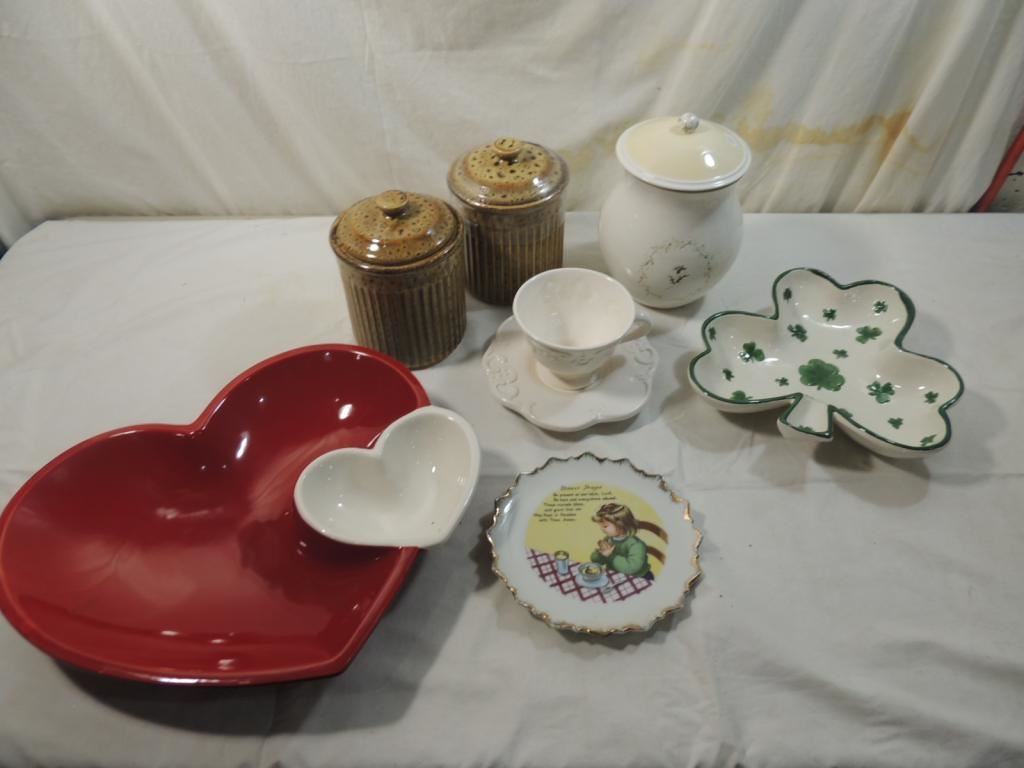 LOT 8 MISC CERAMIC SERVING DISHES, JARS,