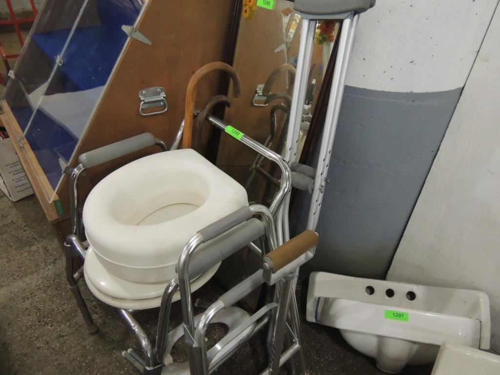 CRUTCHES, TOLIET LIFT, TOLIET ASSIST, SEAT, WALKER, CANES, HOME HEALTH CARE, AS SHOWN SEE PHOTO FOR MORE DETAILS.