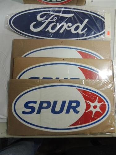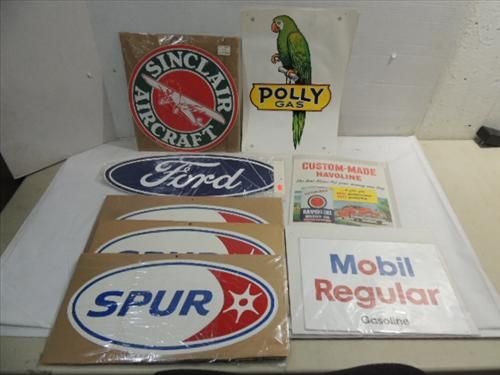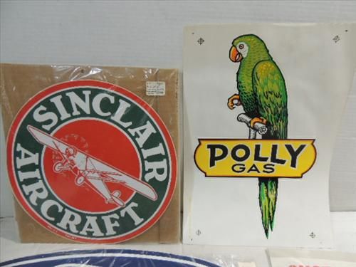 LOT 8 PETROLIANA LARGE ADVERTISE STICKERS: SPUR, SINCLAIR, FORD, POLLY GAS, MOBIL. AS SHOWN. VIEW PICTURE FOR DETAIL.