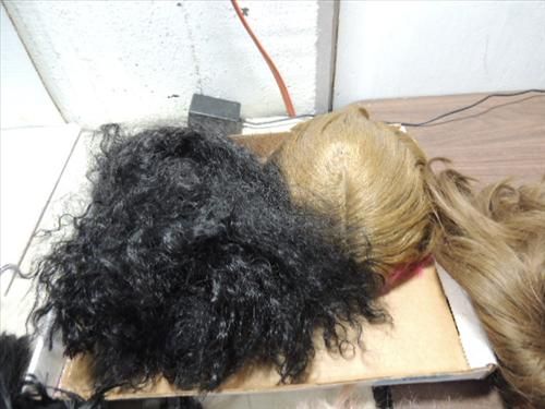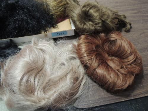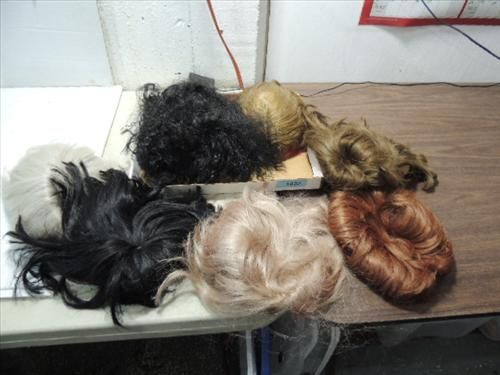 LOT 8 STYLISH WIGS OF VARIOUS HAIR COLORS & LENGTH. AS SHOWN. VIEW PICTURE FOR DETAIL.