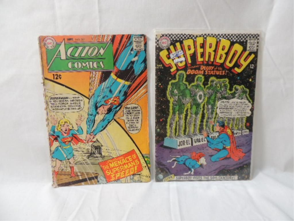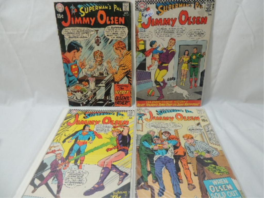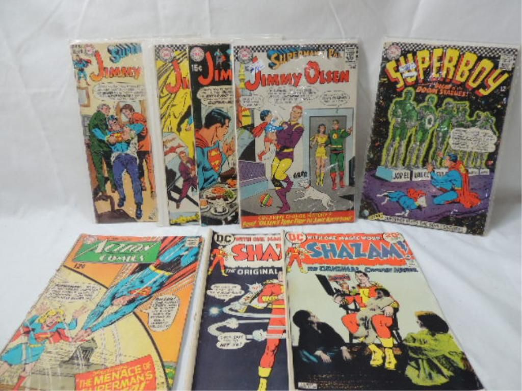 (4) JIMMY OLSEN COMICS. SUPERBOY COMIC. SHAZAM. ACTION COMIC SUPERMAN. AS SHOWN. SEE PHOTO FOR MORE DETAILS.