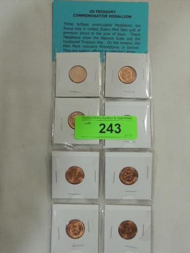 LOT 8 UNC UNITED STATE MINT SET MEDALLIONS D & P. AS SHOWN. VIEW PICTURE FOR DETAIL.