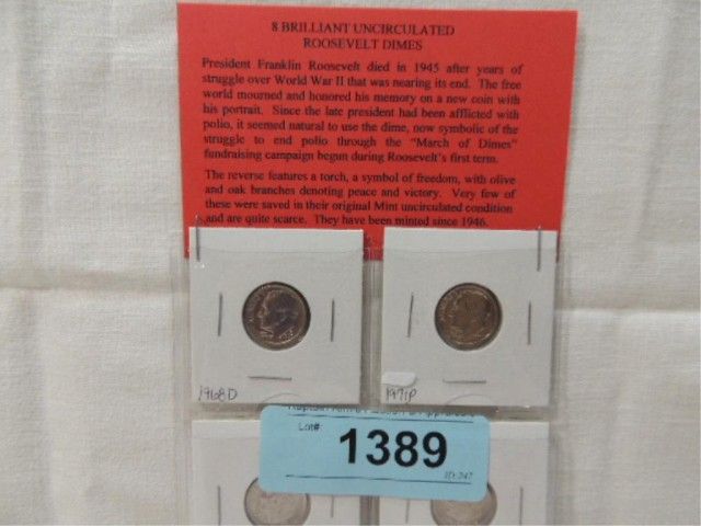 LOT 8 US COINS (UNC) ROOSEVELT DIMES: 1986-D, 71,