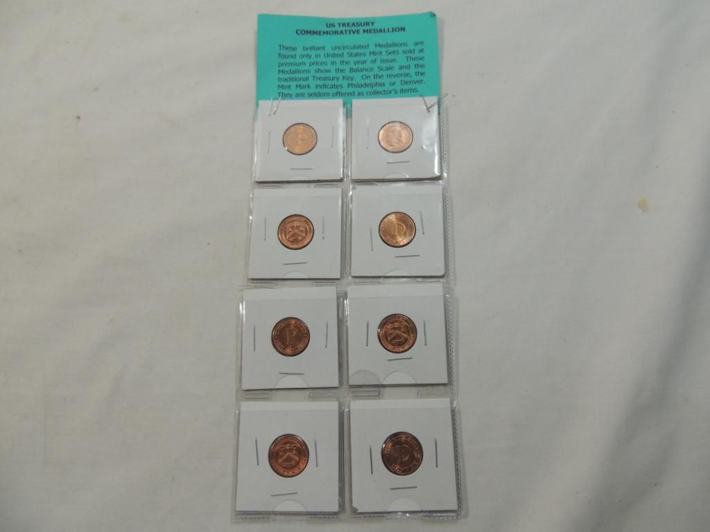 UNCIRCULATED MINT SET MEDALLIONS. THESE BRILLIANT UNCIRCULATED MEDALLIONS ARE FOUND ONLY IN THE UNITED STATES MINT SETS. SOLD AT PRMIUM PRICES IN THE YEAR OF ISSUE. THESE MEDALLIONS SHOW THE BALANCE SCALE AND THE TRADITIONAL TREASURY KEY. ON THE REVERSE T