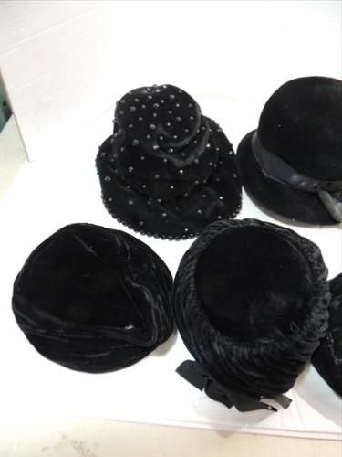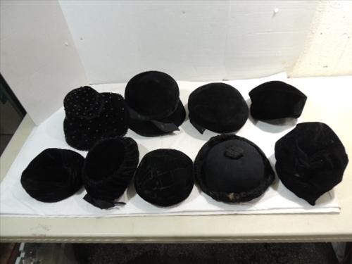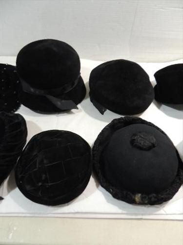LOT 8 VINTAGE 1950S & 60S LADYS BLACK EVENING HATS. AS SHOWN. VIEW PICTURE FOR DETAIL.