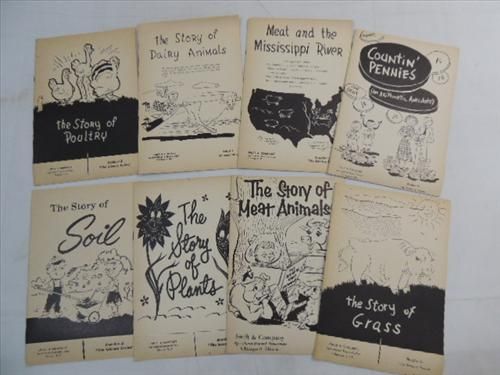 LOT 8 VINTAGE 1956 SWIFT COMPANY CHILD STORY OF: SOIL, PLANTS, MEAT ANIMALS, GRASS, POULTRY, DAIRY ANIMALS, MISSISSIPPI RIVER, COUNTING. AS SHOWN. VIEW PICTURE FOR DETAIL.