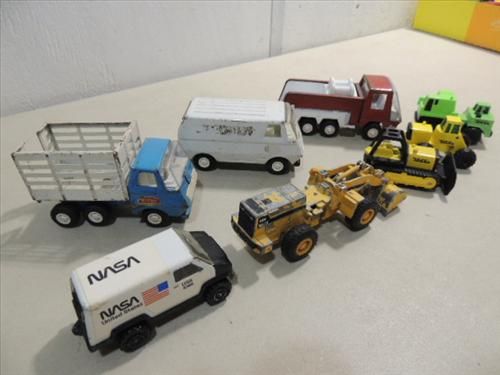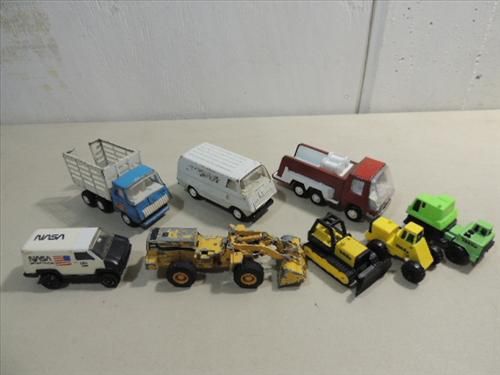 LOT 8 VINTAGE DIE CAST & METAL TOY TRUCKS: (7) TONKA, KOMOMATSU. AS SHOWN. VIEW PICTURE FOR DETAIL.