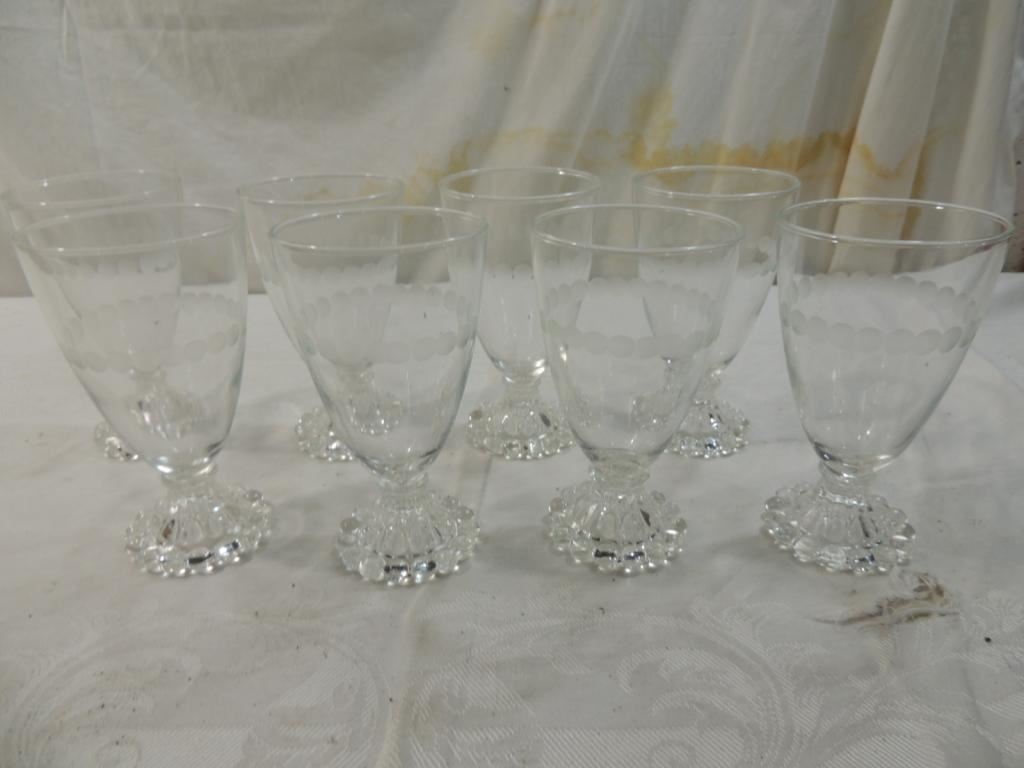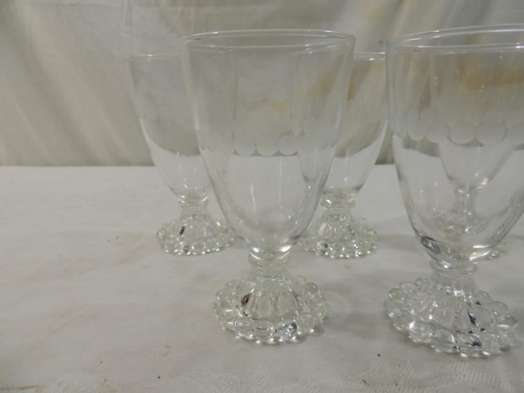 VINTAGE IMPERIAL GLASS CANDLEWICK GLASSES, BOOPIE GLASSES, VINTAGE GLASSWARE, ETCHED AS SHOWN SEE PHOTO FOR MORE DETAILS.