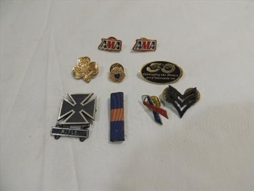 LOT 8 VINTAGE LAPEL PINS: MILITARY, GIRL SCOUTS &