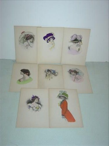 LOT OF 8 VINTAGE POSTCARDS. ALL HAVE WATERCOLOR IMAGES OF WOMEN. AS SHOWN. VIEW PICTURE FOR DETAIL.