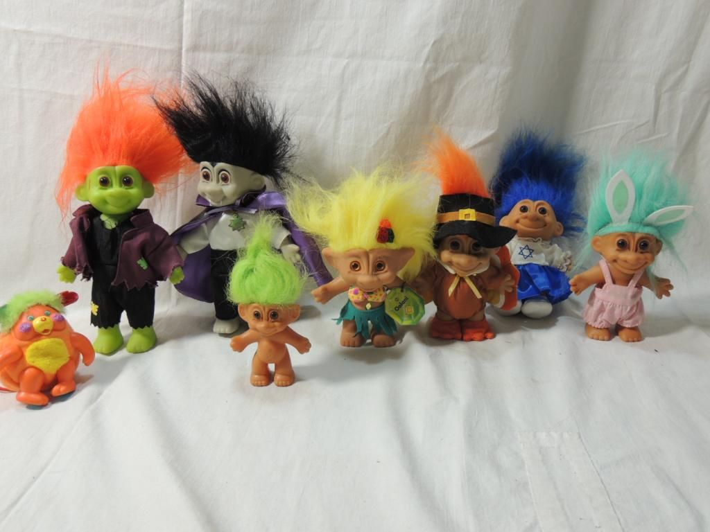VINTAGE TROLL DOLLS HALLOWEEN TROLLS, THANKSGIVING TOLLS, JEWISH TROLL, EASTER TROLL. ASSORTED AS SHOWN SEE PHOTO FOR MORE DETAILS.