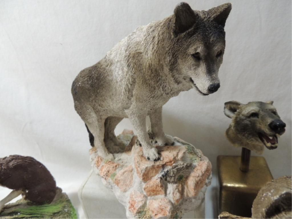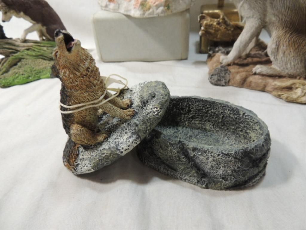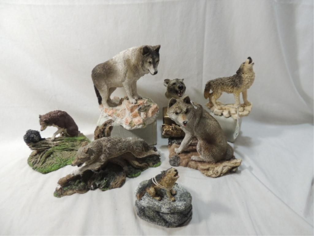 LOT 8 WOLF FIGURES AND BOX. AS SHOWN. SEE PHOTO FOR MORE DETAILS.