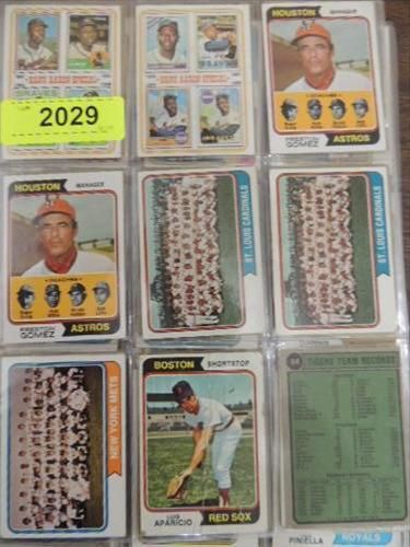 LOT 82 1974 TOPPS BASEBALL PLAYER CARDS: APARICIO, JENKINS, BAYLOR, GIBSON, . AS SHOWN. VIEW PICTURE FOR DETAIL.
