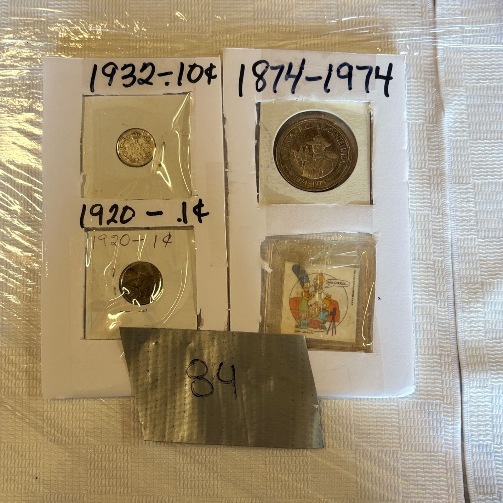 Includes Klondike Day 1874-1974 and 1920 penny, 1932 dime plus Simpsons ?