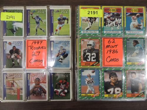 LOT 89 (62) 1986 TOPPS & (27) 1997 ROOKIE FOOTBALL CARDS. AS SHOWN. VIEW PICTURE FOR DETAIL.