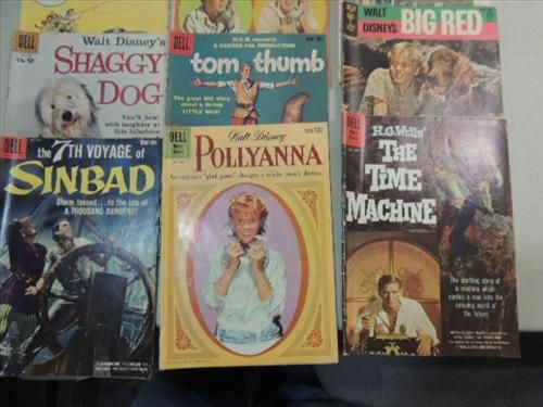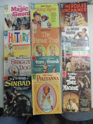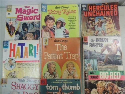 LOT 9 1950S & 60S DELL SILVER AGE COMICS: MOVIES. HATARI, PARENT TRAP, TOM THUMB, SINBAD AND MORE. AS SHOWN. VIEW PICTURE FOR DETAIL.