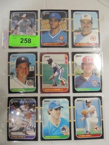 LOT 9 1987 DONRUSS BASEBALL PLAYER CARDS. AS SHOWN. VIEW PICTURE FOR DETAIL.
