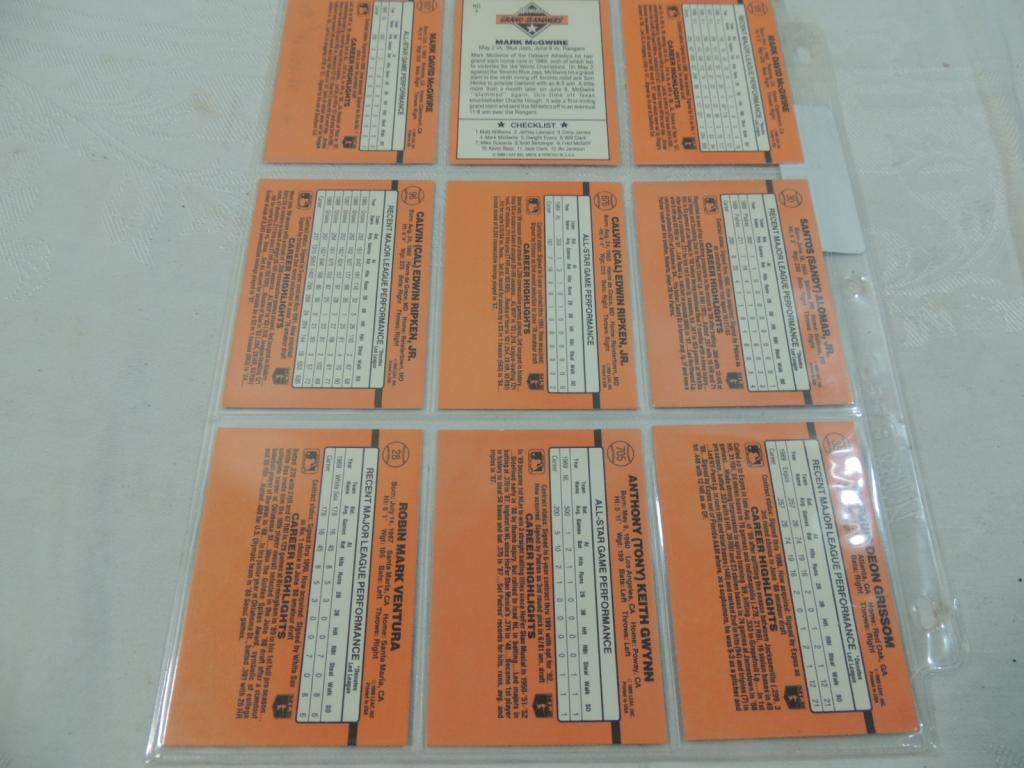MARK MCGUIRE, SANDY ALOMAR, CAL RIPKEN, MARQUIS GRISSOM, TONY GWYNN, ROBIN VENTURA, BASEBALL PLAYER CARDS. TRADING CARDS. COLLECTIBLE. BASEBALL MEMORABILIA. VINTAGE TRADING CARDS, VINTAGE BASEBALL CARDS, EX-NM CONDITION AS SHOWN. SEE PHOTO FOR MORE DETAILS.
