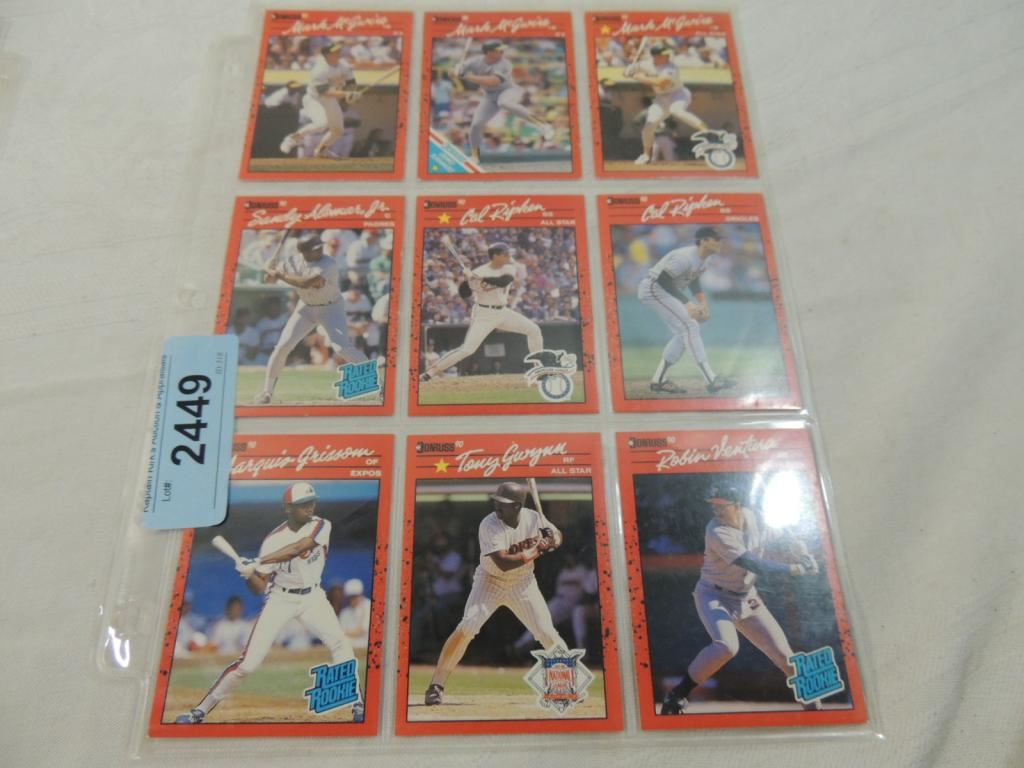 MARK MCGUIRE, SANDY ALOMAR, CAL RIPKEN, MARQUIS GRISSOM, TONY GWYNN, ROBIN VENTURA, BASEBALL PLAYER CARDS. TRADING CARDS. COLLECTIBLE. BASEBALL MEMORABILIA. VINTAGE TRADING CARDS, VINTAGE BASEBALL CARDS, EX-NM CONDITION AS SHOWN. SEE PHOTO FOR MORE DETAILS.