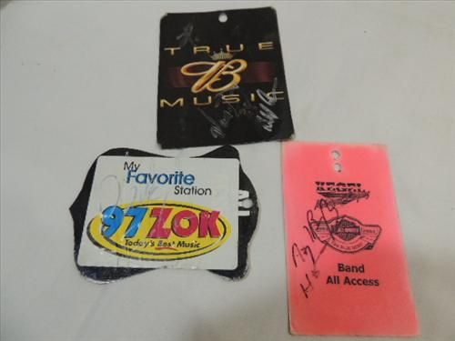 LOT 9 2004 TO 2006 BACK STAGE ACCESS PASSES WITH UNIDENTIFIED AUTOGRAPHS. AGNUS JACKSON, KISS, PMF, FACELIFT AND MORE. AS SHOWN. VIEW PICTURE FOR DETAIL. PLEASE BE ADVISED, AND INFORMED REGARDING SIGNATURES OR AUTOGRAPHS THAT WE SELL AT AUCTION: WE ARE NOT AUTHENTICATORS, AND WE DO NOT AUTHENTICATE, OR VALIDATE ANY AUTOGRAPHS OR SIGNATURES THAT WE OFFER AT AUCTION. SOME AUTOGRAPHS OR SIGNATURES MAY COME WITH AN AUTHENTICATION FROM ANY ONE OF LITERALLY HUNDREDS OF AUTHENTICATORS ACROSS THE COUNTRY, AND AROUND THE WORLD. WE DO NOT ENDORSE ANY AUTHENTICATOR, NOR DO WE GUARANTEE THAT ANY AUTOGRAPH OR SIGNATURE IS AUTHENTIC, OR THAT IT WILL PASS AUTHENTICATION BY ANY AUTHENTICATOR. ALL AUTOGRAPHS OR SIGNATURES ARE SOLD