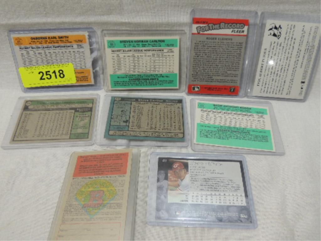 LOT 9 ALL STAR BASEBALL PLAYER CARDS: OZZIE SMITH, STEVE CARLTON, ROGER CLEMENS AND MORE. AS SHOWN. VIEW PICTURE FOR DETAIL.