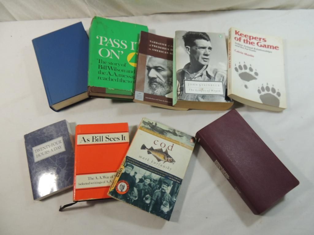 LOT 9 ASSORTED BOOKS: AA, GRAPES OF WRATH, COD, MU