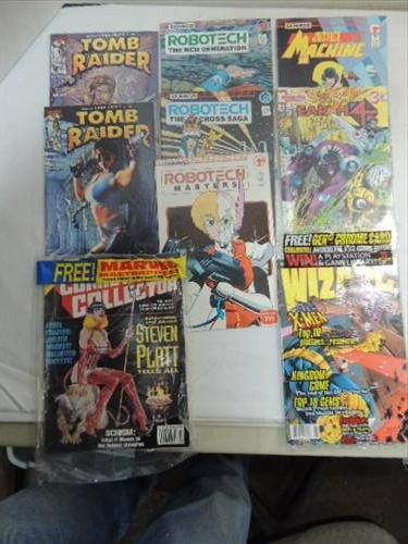 LOT 9 ASSORTED COMIC BOOKS: TOP COW - TOMB RAIDER, COMICO - ROBOTECH AND MORE. AS SHOWN. VIEW PICTURE FOR DETAIL.