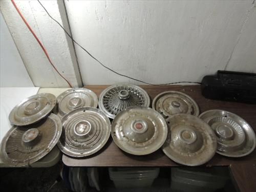LOT 9 ASSORTED VINTAGE 1950S TO 70S HUBCAPS: MERCURY. AS SHOWN. VIEW PCTURE FOR DETAIL.