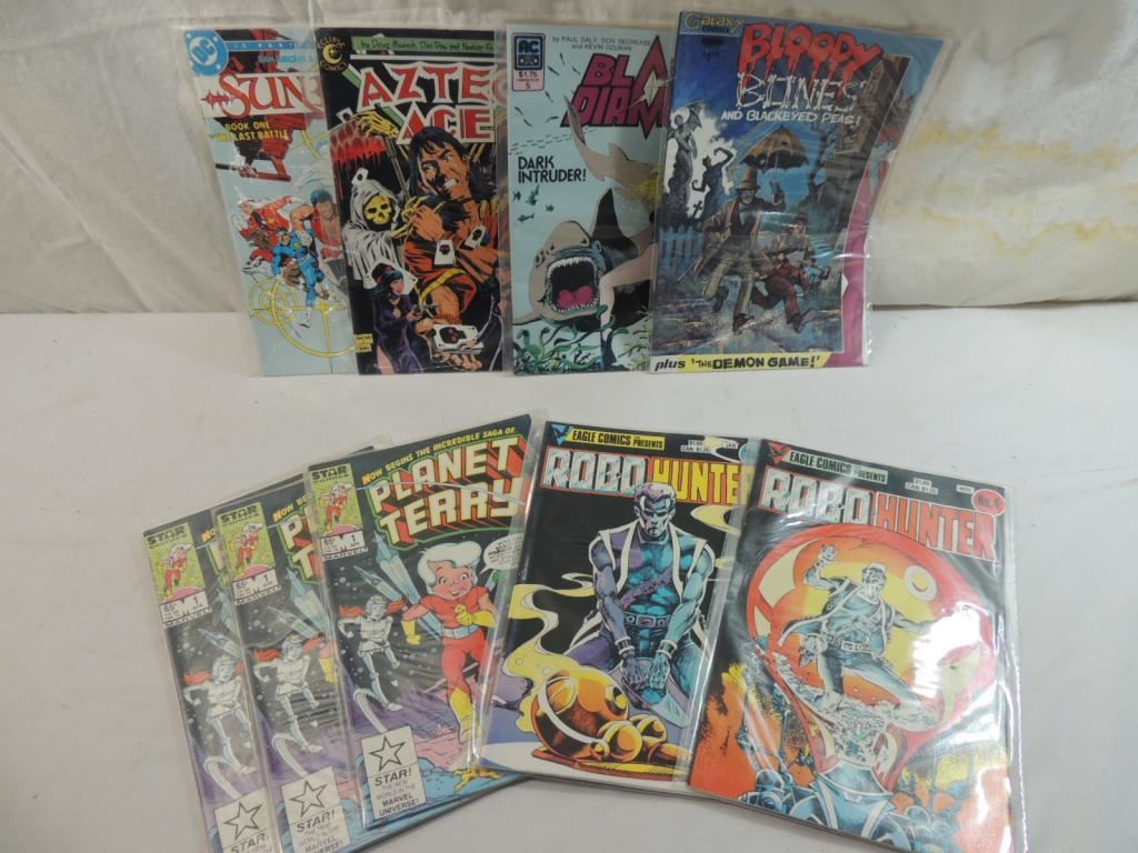 ROBO HUNTER, PLANET TERRY, BLOODY BONES, BLACK DIAMOND, AZTEC ACE, SUN DEVILS, COMICS VINTAGE COMICS HIGHLY COLLECTIBLE GOOD CONDITION. PROTECTIVE PLASTIC. AS SHOWN SEE PHOTO FOR MORE DETIALS.