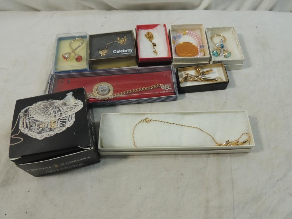 GOLDTONE, KEYRINGS, NECKLACES, JEWELRY BOX, AS SHOWN SEE PHOTO FORM ORE DETIALS.