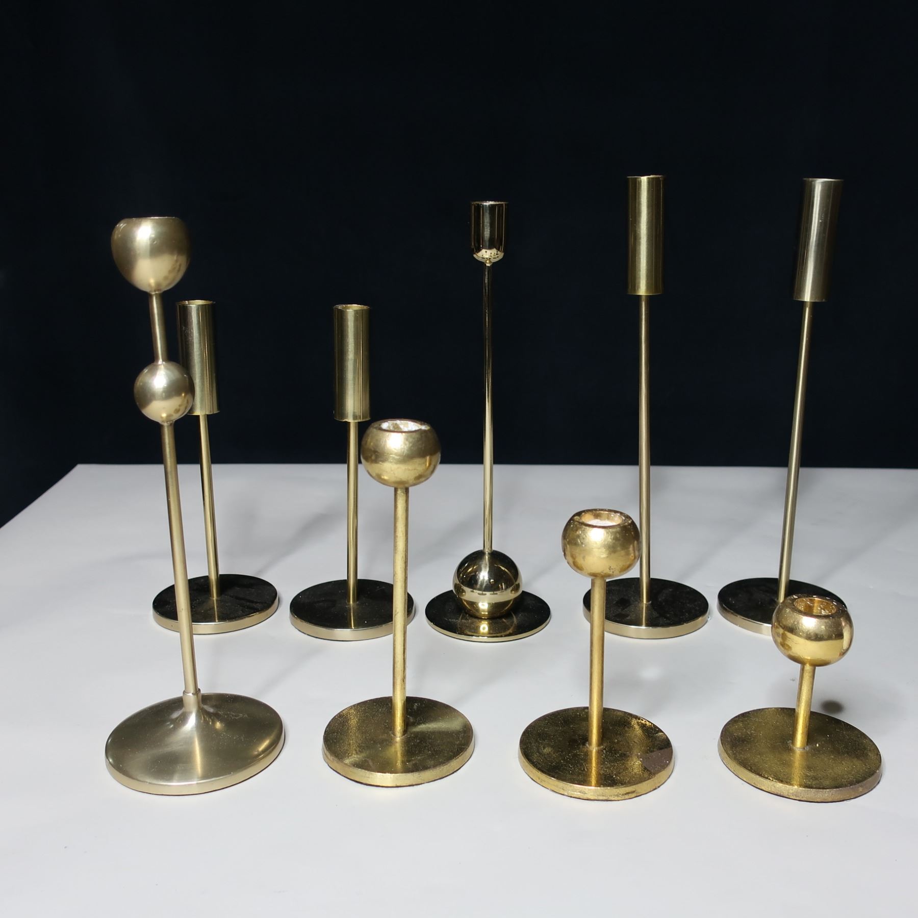 LOT: 9 BRASS CANDLE HOLDERS/ PORTE-CHANDELLE