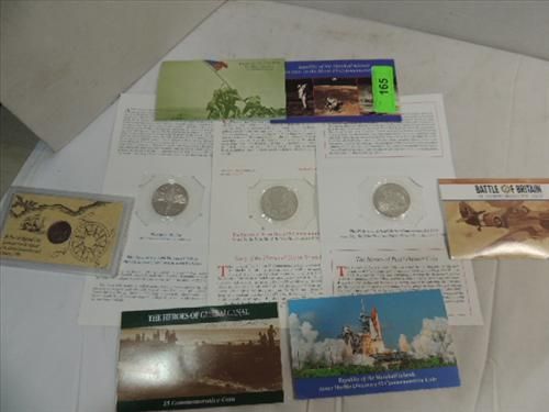 LOT 9 COMMEMORATIVE MEDALLION SET: MAN ON THE MOON, SPACE SHUTTLE DISCOVERY, IWO JIMA AND MORE. AS SHOWN. VIEW PICTURE FOR DETAIL.