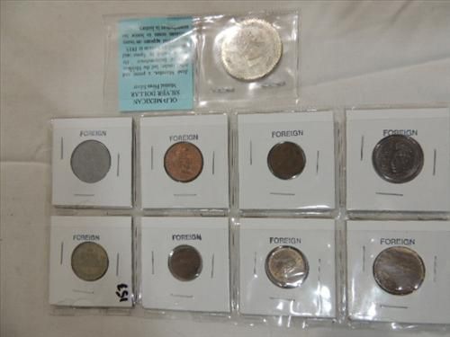 LOT 9 FOREIGN COINS: 1964 MEXICAN PESO, 2001 FIJI CENT AND MORE. AS SHOWN. VIEW PICTURE FOR DETAIL.