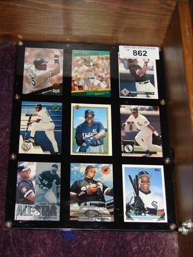 LOT INCLUDES: LEAF #7, SCORE #33, LEAF #195, DONRUSS #341, BOWMAN #320, TOPPS #318, TOPPS #150, TOPPS #400, AND FLEER ULTRA ALL-STAR #19. CARDS ARE IN PROTECTIVE DISPLAY. AS SHOWN. VIEW PICTURE FOR DETAIL.