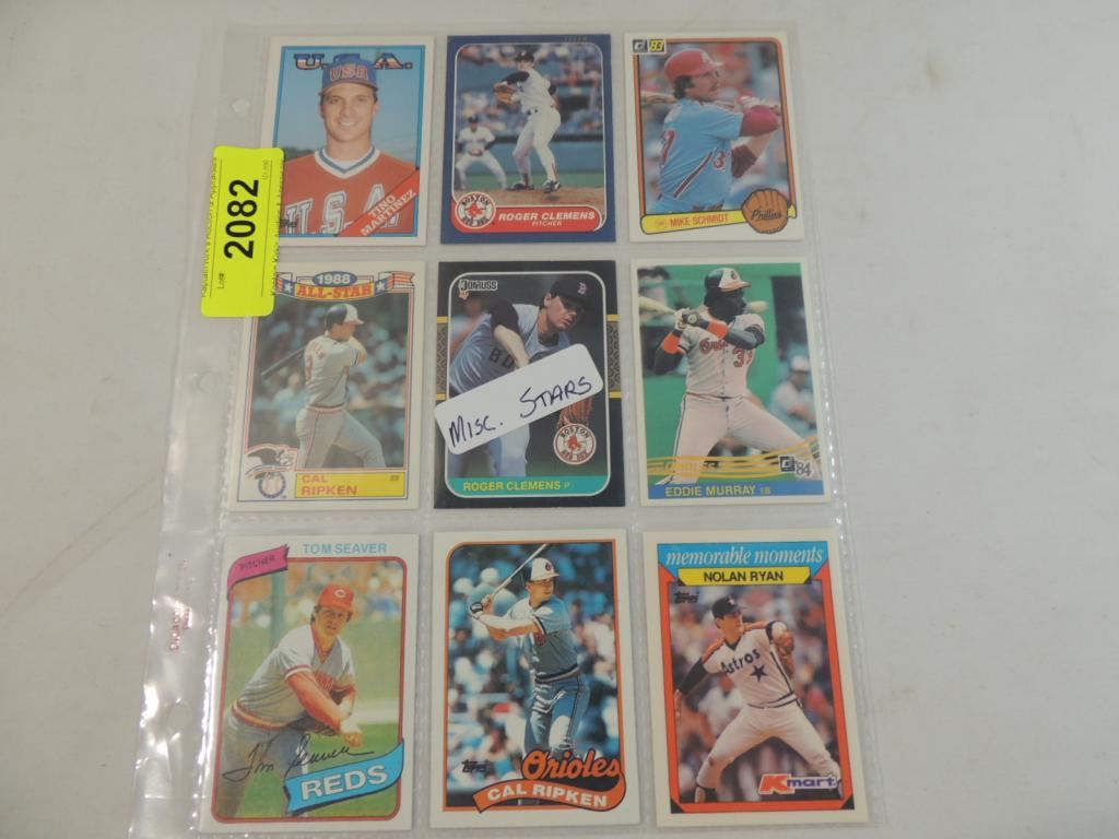 LOT 9 MISC STAR BASEBALL CARDS: RYAN, RIPKEN, SEAV